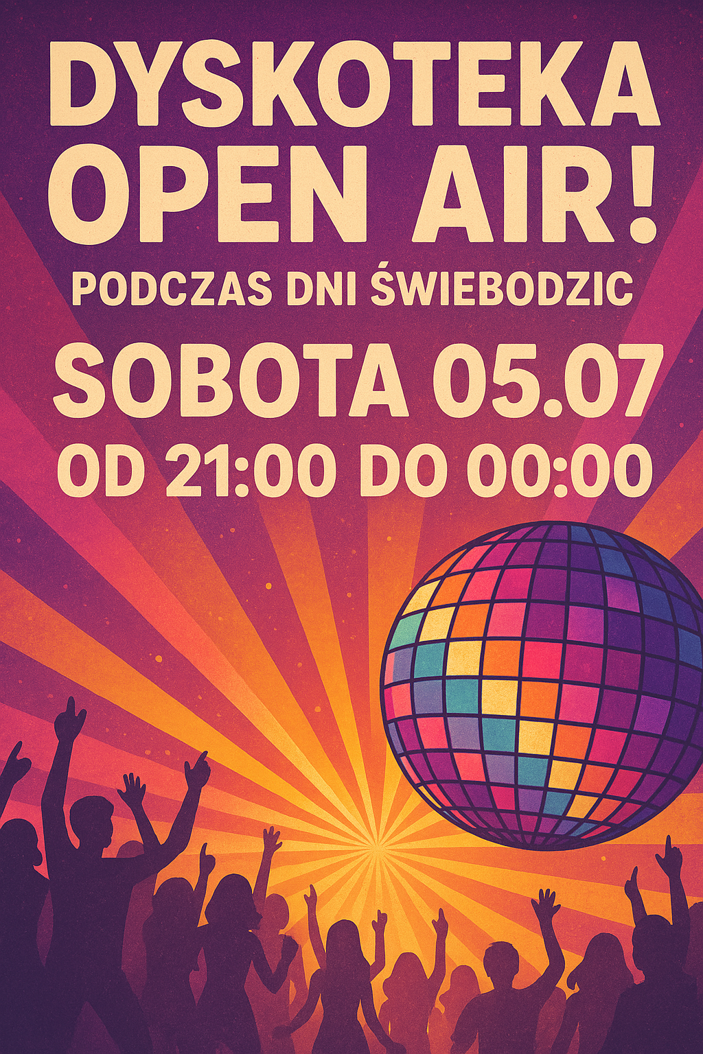 Gorąco zapraszamy na wyjątkową dyskotekę open air, która rozkręci sobotni wieczór podczas Dni Świebodzic 2025!