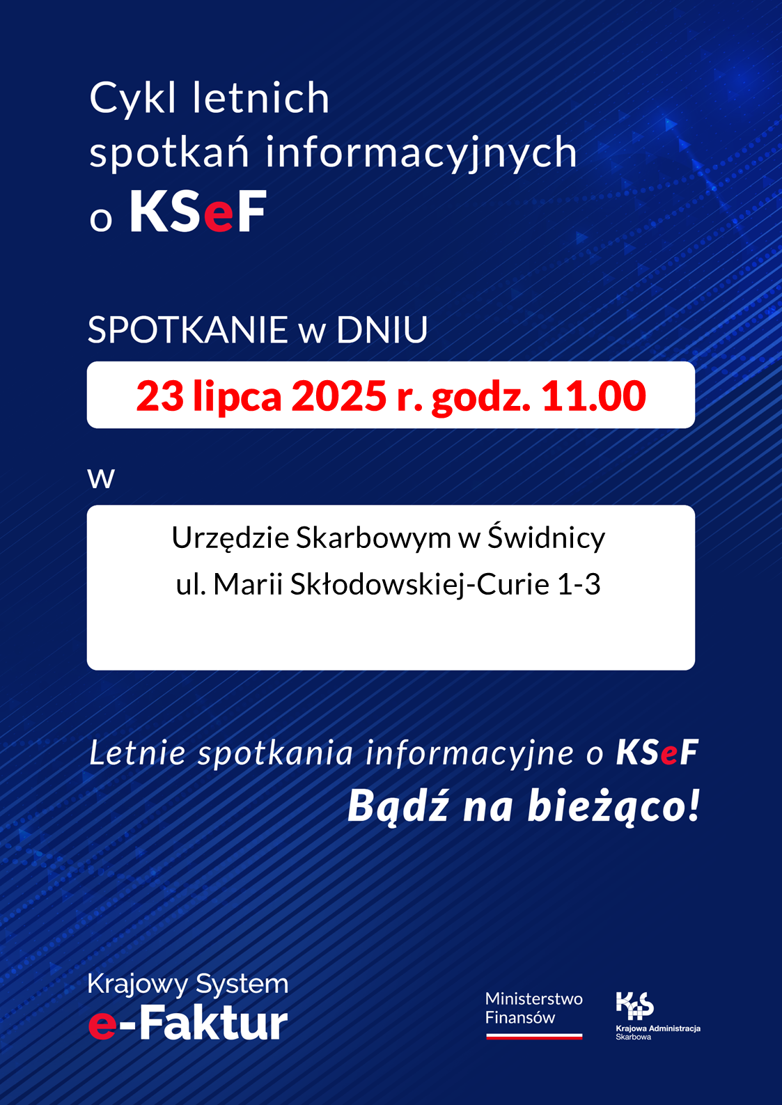 Zachęcamy przedsiębiorców oraz osoby zainteresowane zmianami w systemie fakturowania do udziału w letnim spotkaniu informacyjnym dotyczącym Krajowego Systemu e-Faktur (KSeF).