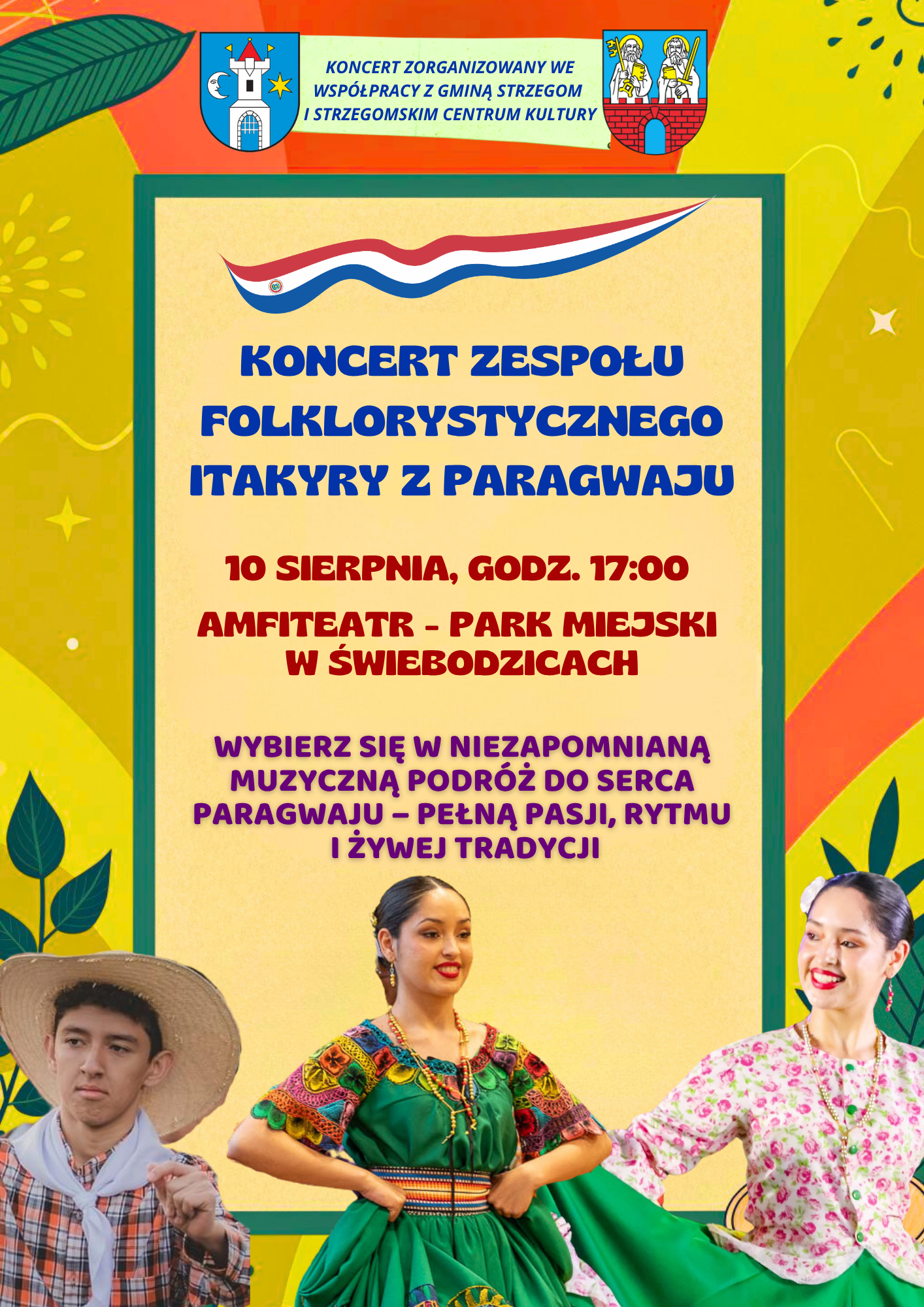 Już w najbliższą niedzielę – 10 sierpnia o 17:00 zapraszamy Was do Parku Miejskiego w Amfiteatrze, gdzie wystąpi wyjątkowy gość prosto z Ameryki Południowej – Zespół Muzyczno-Taneczny ITAKYRY z Paragwaju!