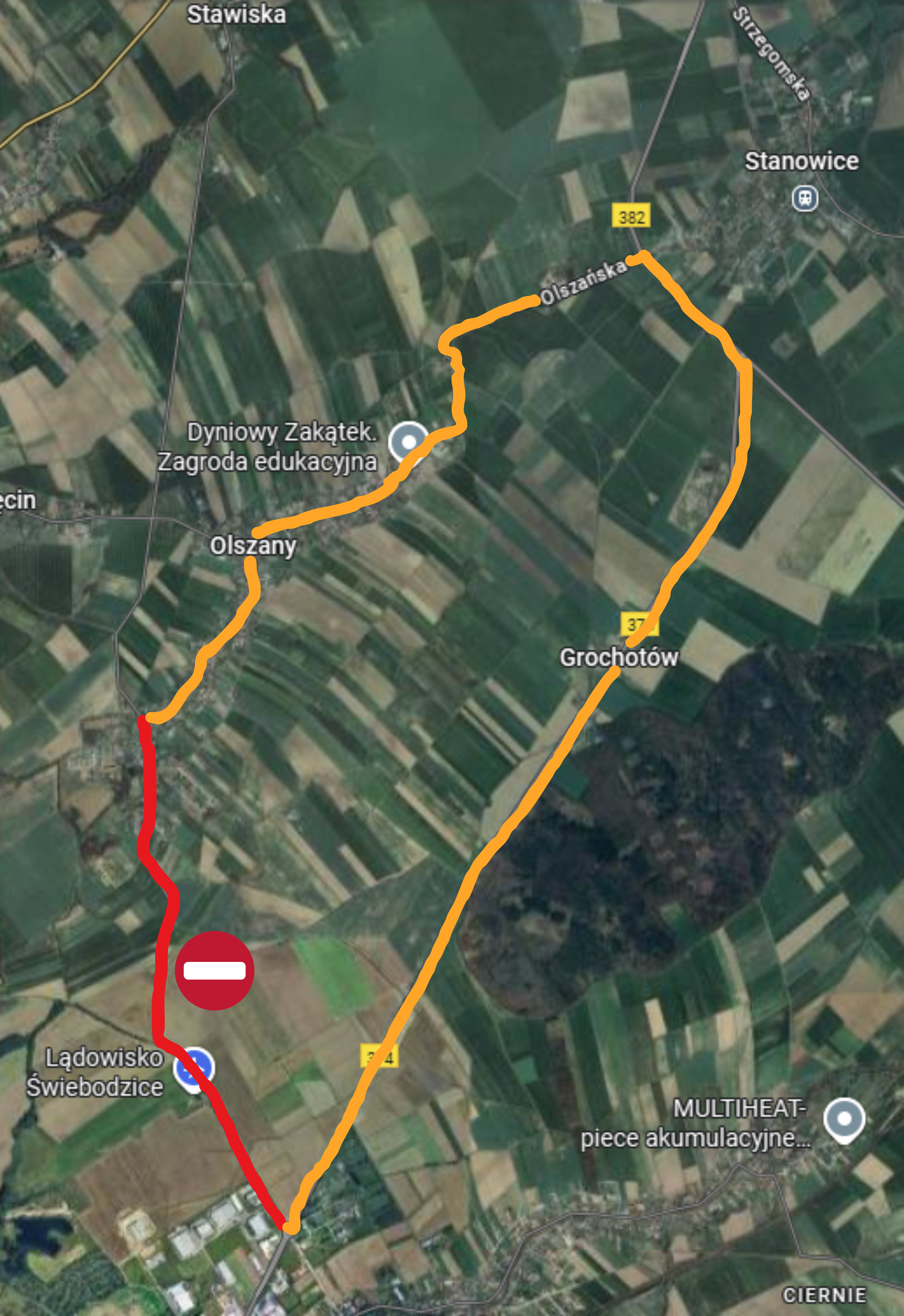 W tym czasie wyznaczono objazd przez miejscowości Stanowice i Grochotów, który umożliwi bezpieczne przemieszczanie się po okolicy.