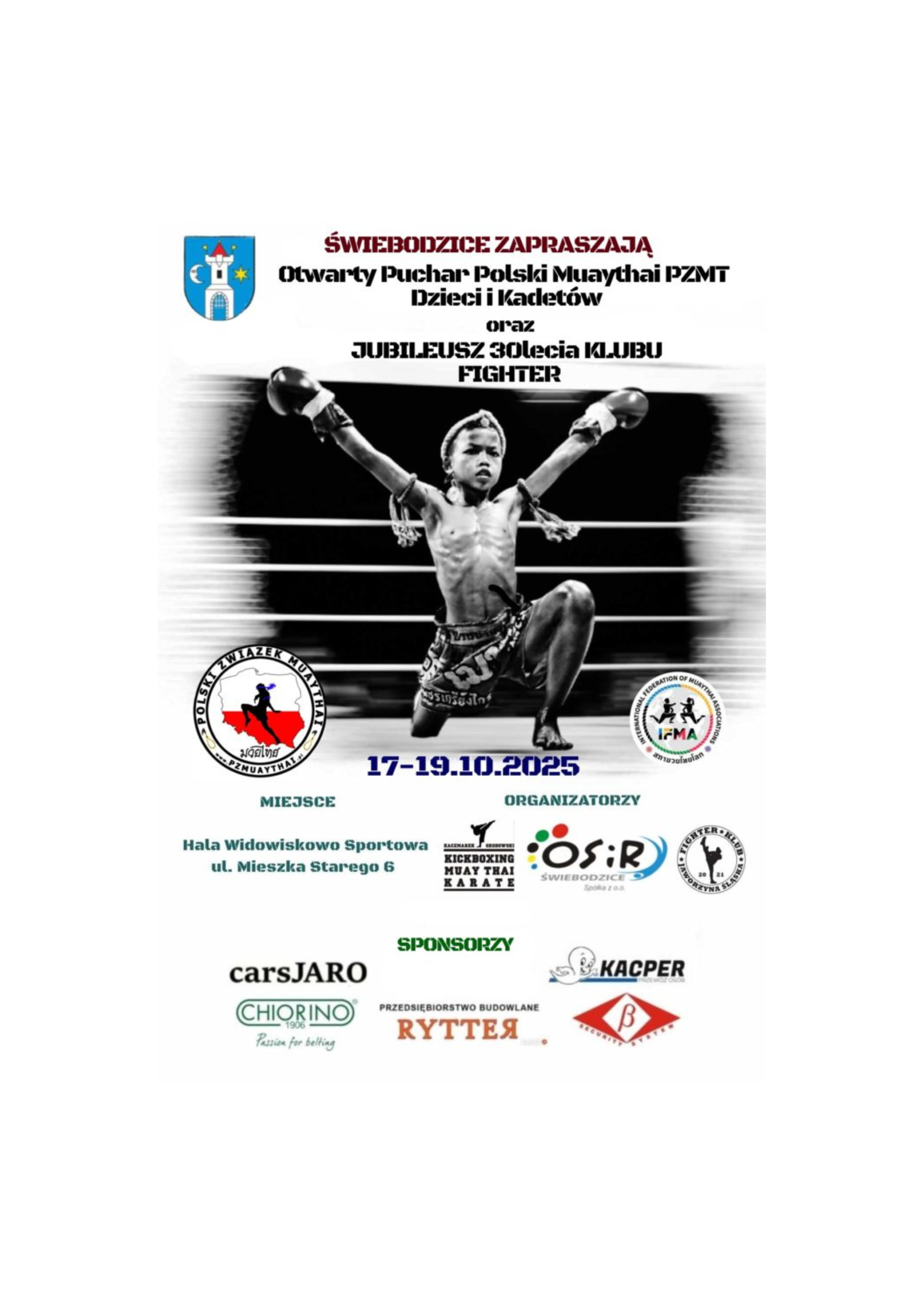Piątkowe wydarzenie rozpocznie się rejestracją zawodników i ich ważeniem, przeprowadzona zostanie także odprawa trenerska. Na sobotę zaplanowano walki eliminacyjne i półfinały, natomiast wielki finał odbędzie się w niedzielę. - Już w dniach 17–19 października 2025 r. nasza Hala Widowiskowo–Sportowa przy ul. Mieszka Starego 6 stanie się areną zmagań młodych wojowników z całej Polski! Serdecznie zapraszamy do kibicowania młodym sportowcom i wspólnego przeżywania emocji sportowych na najwyższym poziomie! – zaprasza Arkadiusz Kaczmarek. Szczegóły znajdą Państwo na plakacie.