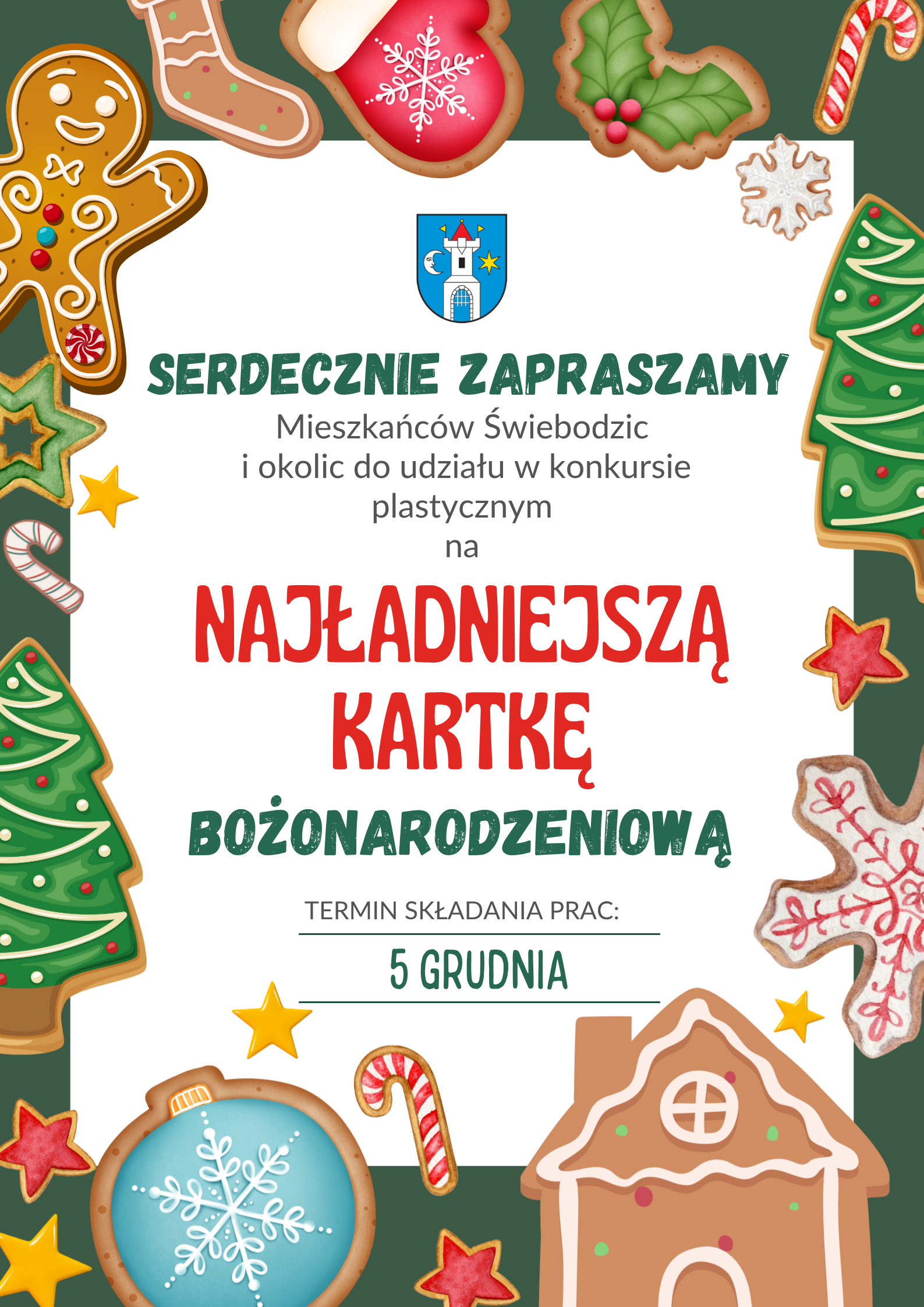 - Prace można również nadsyłać pocztą na adres: Urząd Miejski, ul. Rynek 1, 58-160 Świebodzice z dopiskiem "Konkurs na Najładniejszą Kartkę Bożonarodzeniową".