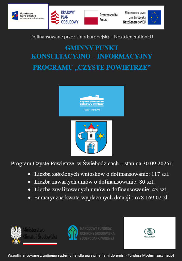 Program Czyste Powietrze pod nadzorem Ministerstwa Klimatu i Środowiska jest realizowany od września 2018 r. przez: Narodowy Fundusz Ochrony Środowiska i Gospodarki Wodnej (NFOŚiGW) wraz z szesnastoma funduszami wojewódzkimi (WFOŚiGW).